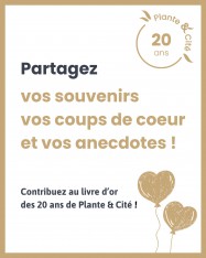 Vous avez envie de partager une anecdote sur l'histoire de Plante & Cité ? Nous raconter un moment qui vous a particulièrement marqué ? Ou tout simplement nous dire quelques mots doux ? A vos claviers !